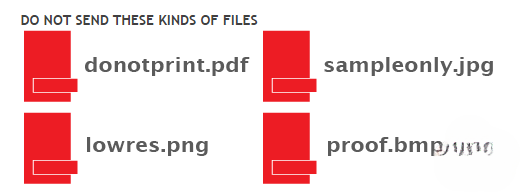 When sending artwork, do not send extra files, like proofs or samples, because they might get printed. Only send the files you need printed.