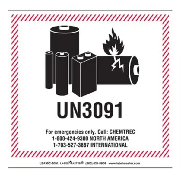 CHEMTREC UN3491 Lithium Battery Handling Marking, 100mm x 100mm, PVC-Free Film