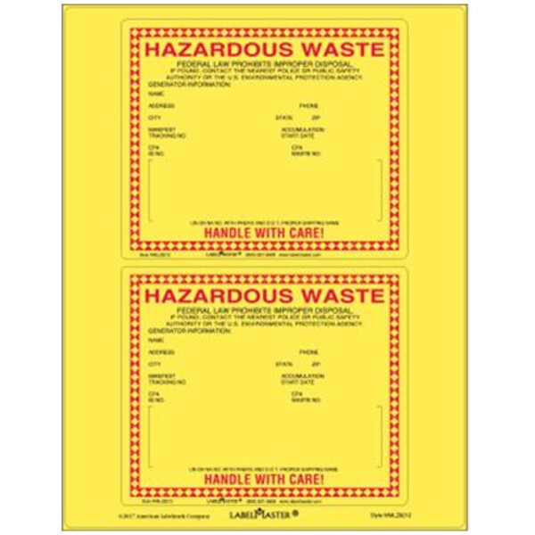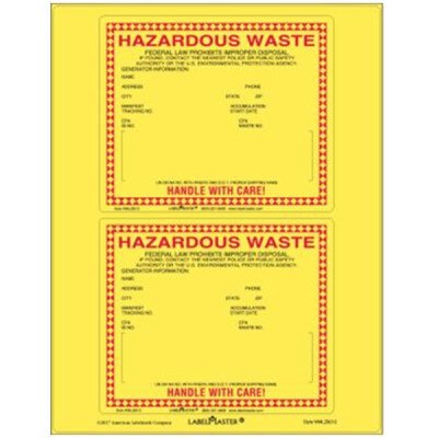 Standard Waste Label for 12mm UN/NA, Laser Vinyl, 6" x 5", 25 Sheets Per Pack WMLZ8212