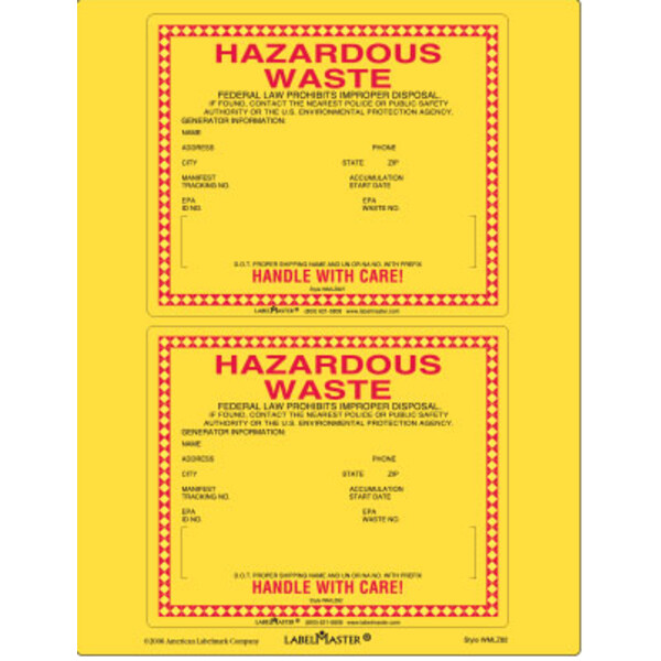 California Waste Label, Laser Paper, 6" x 5" WMLZCA87