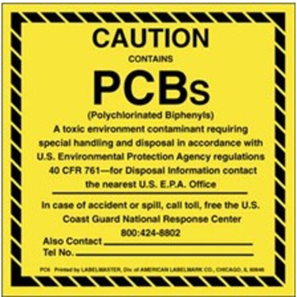 Caution Contains PCBs Label, 2 1/2" x 2 1/2"