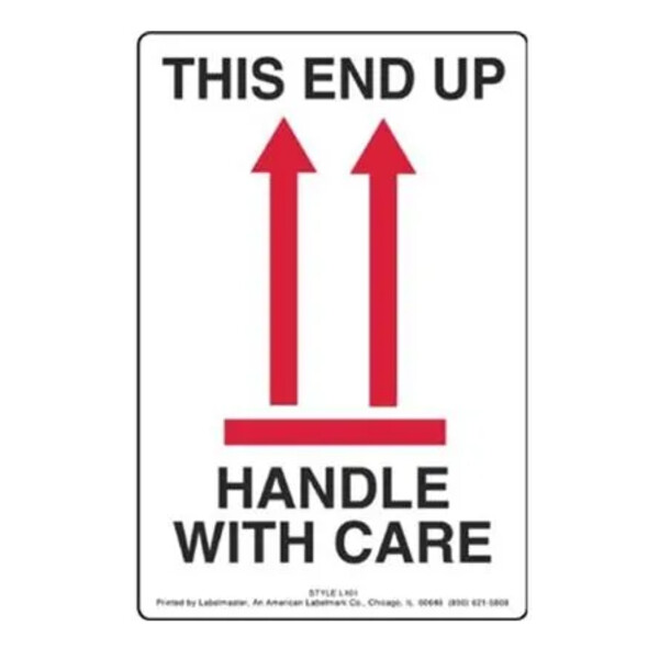 This End Up Handle with Care Label, Paper, 4" x 6" L101